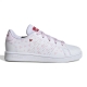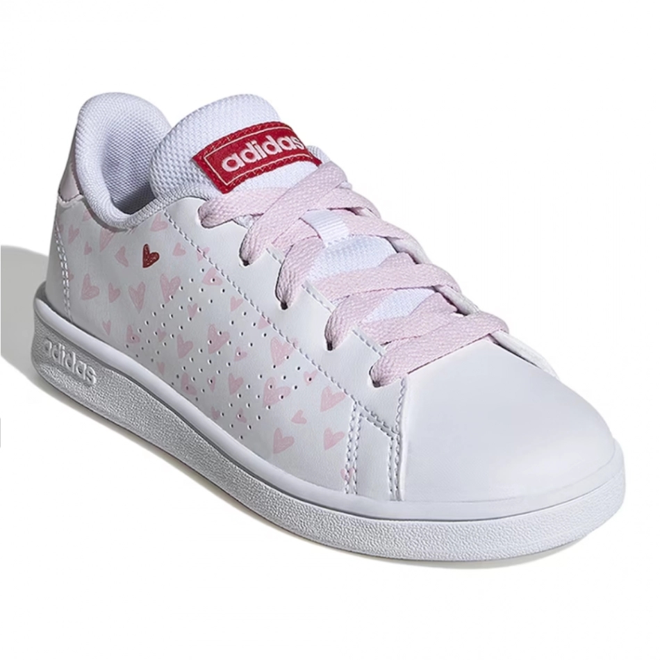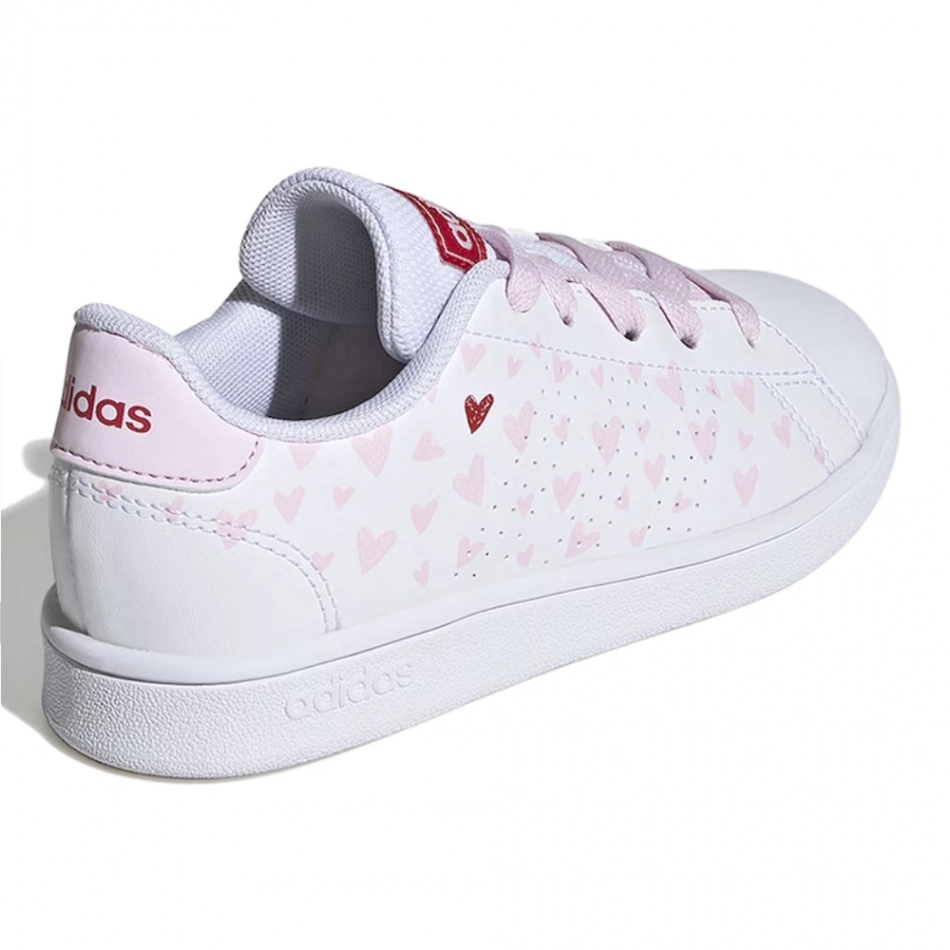 Adidasi de performanta dulci, de culoare alba, cu detalii roz cu inimioare si elemente din piele ecologica.