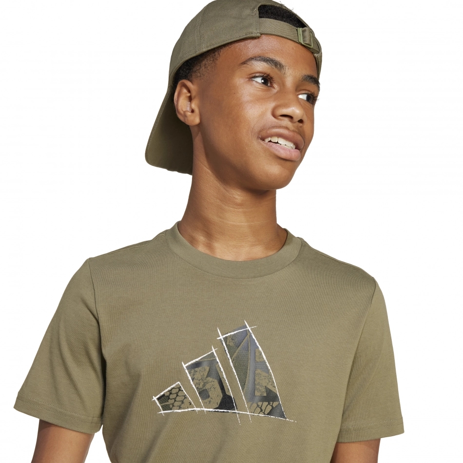 Tricoul grafic demonstrează angajamentul Adidas pentru sustenabilitate, oferind un design la fel de conștient și elegant.