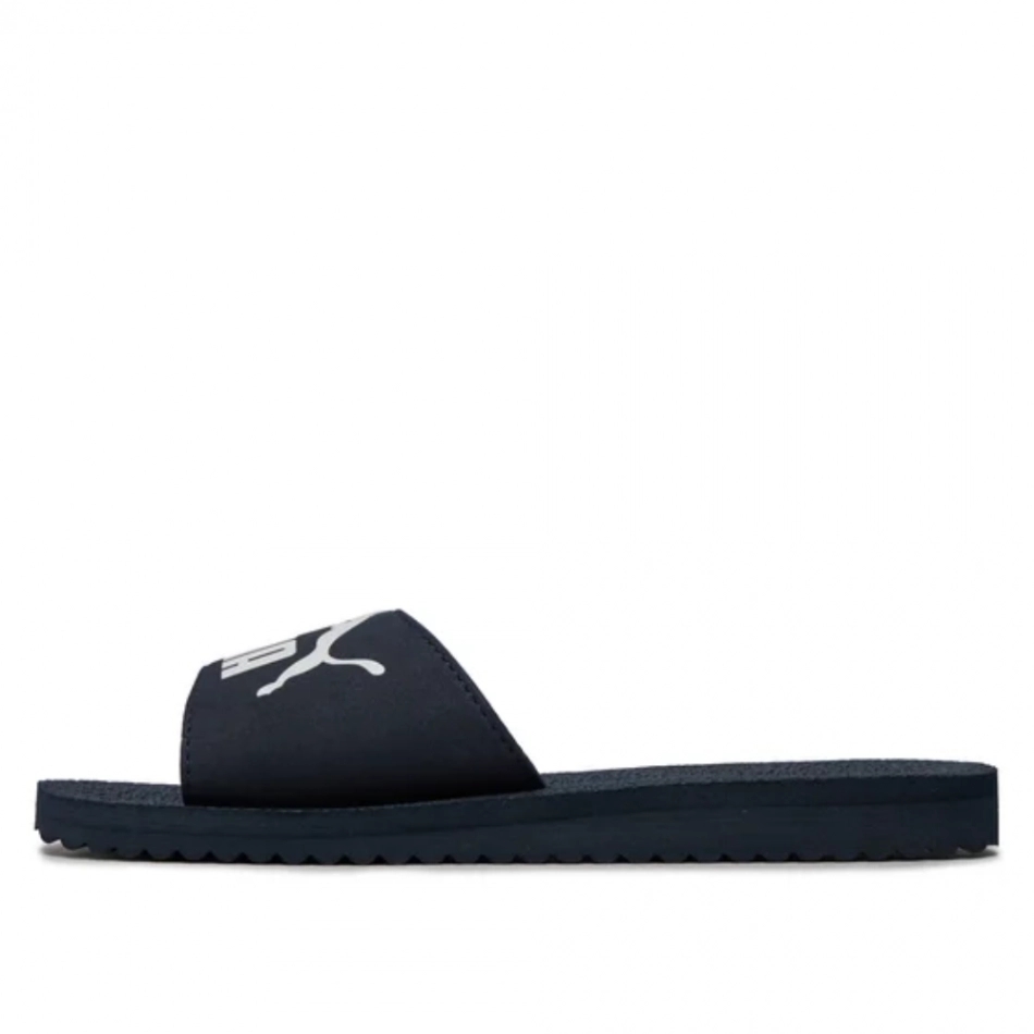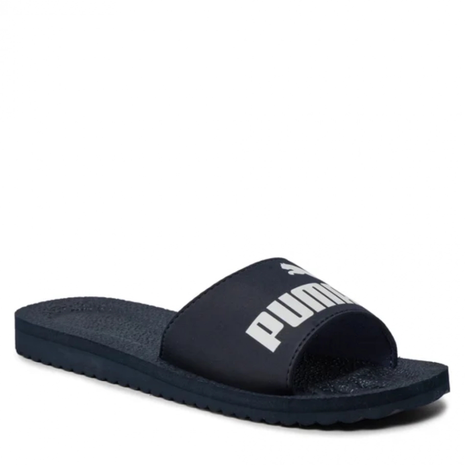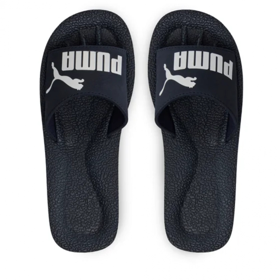 Papucii sunt împodobiți cu logo-ul mărcii Puma.