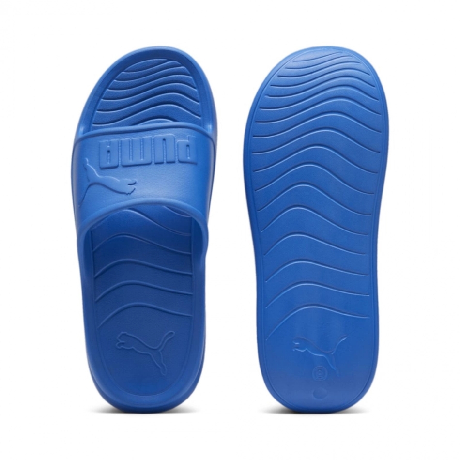 Acești papuci sunt împodobiți cu sigla mărcii Puma.